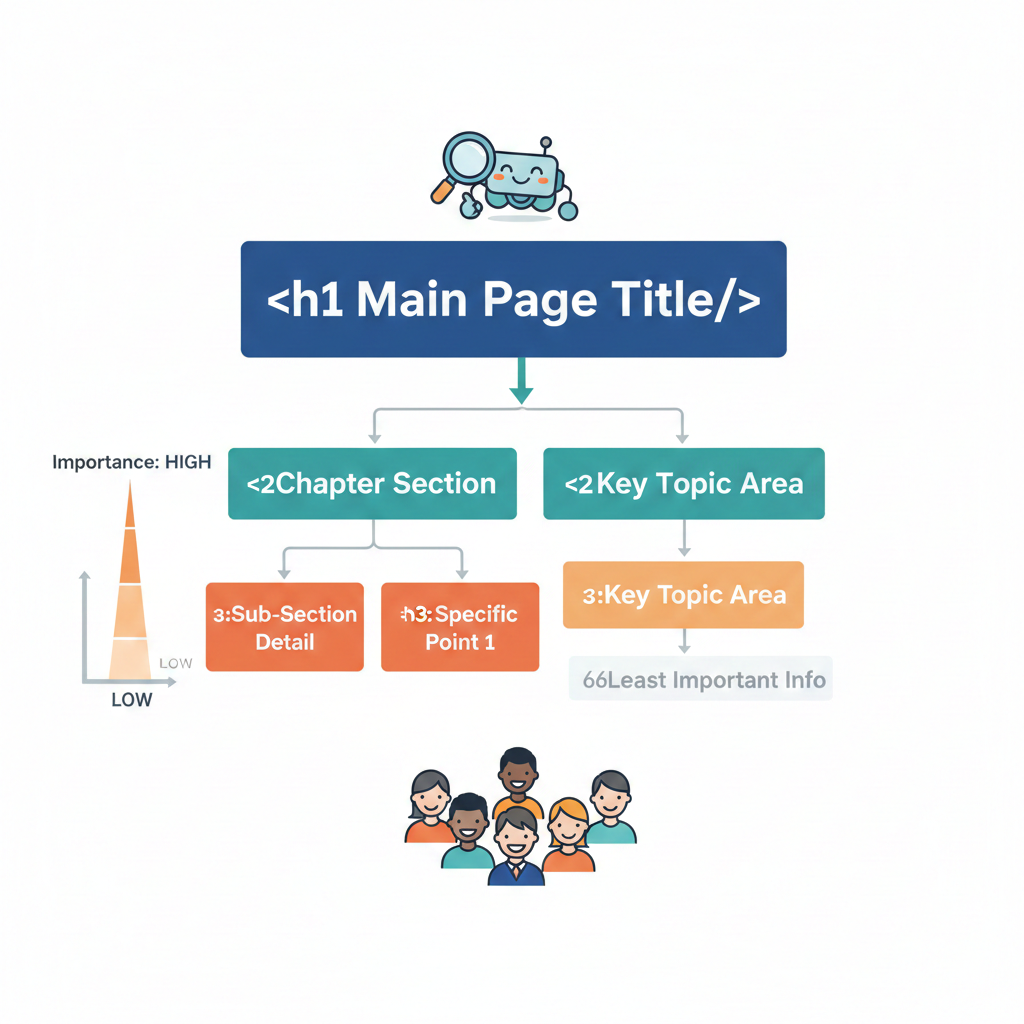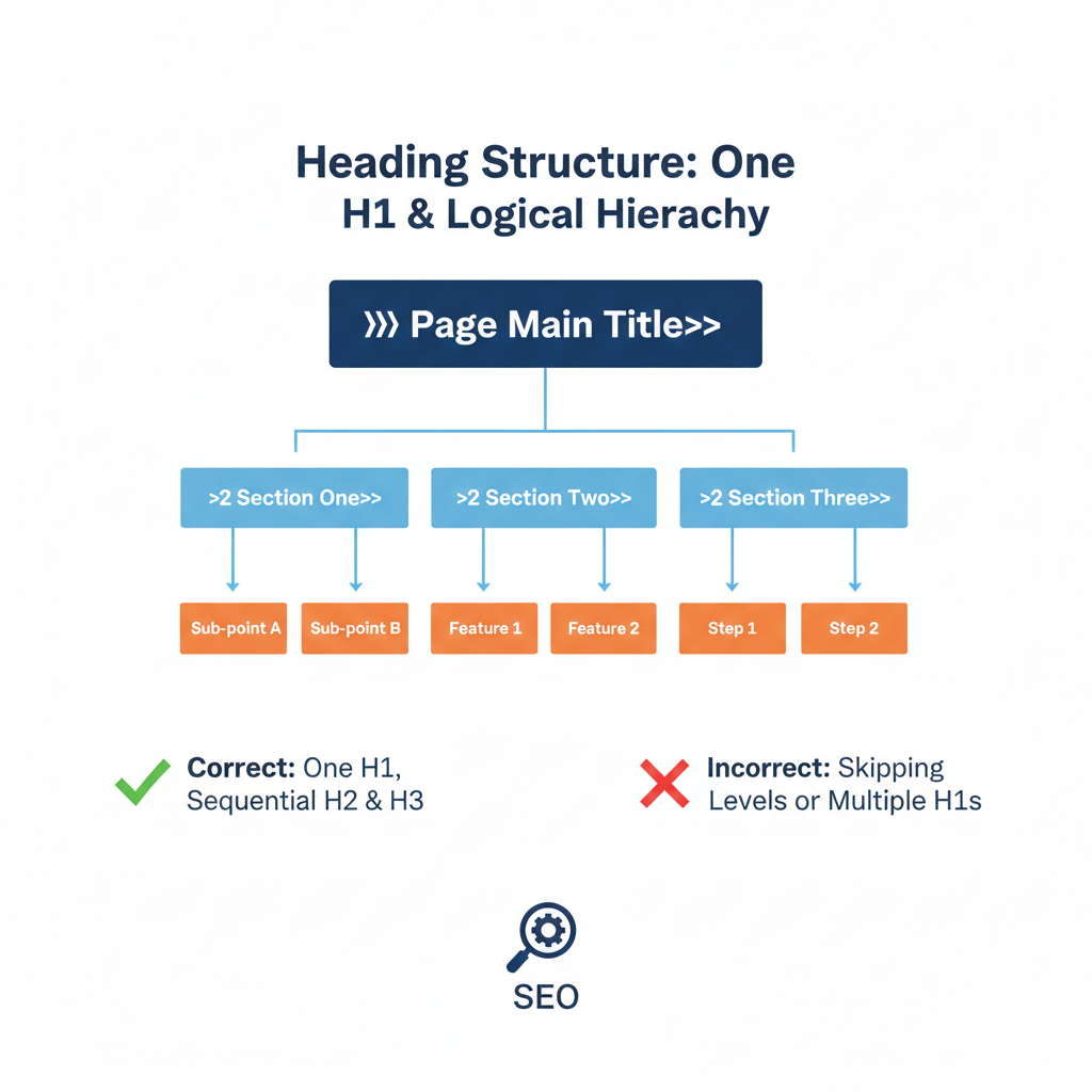 Heading tags are the “chapters and sub‑chapters” of your page. They guide both visitors and search engines through what your page is about.