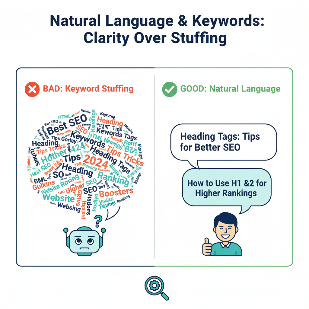 Cramming multiple keywords into a heading might seem smart, but it makes your content hard to read and can annoy visitors, and search engines notice that too.