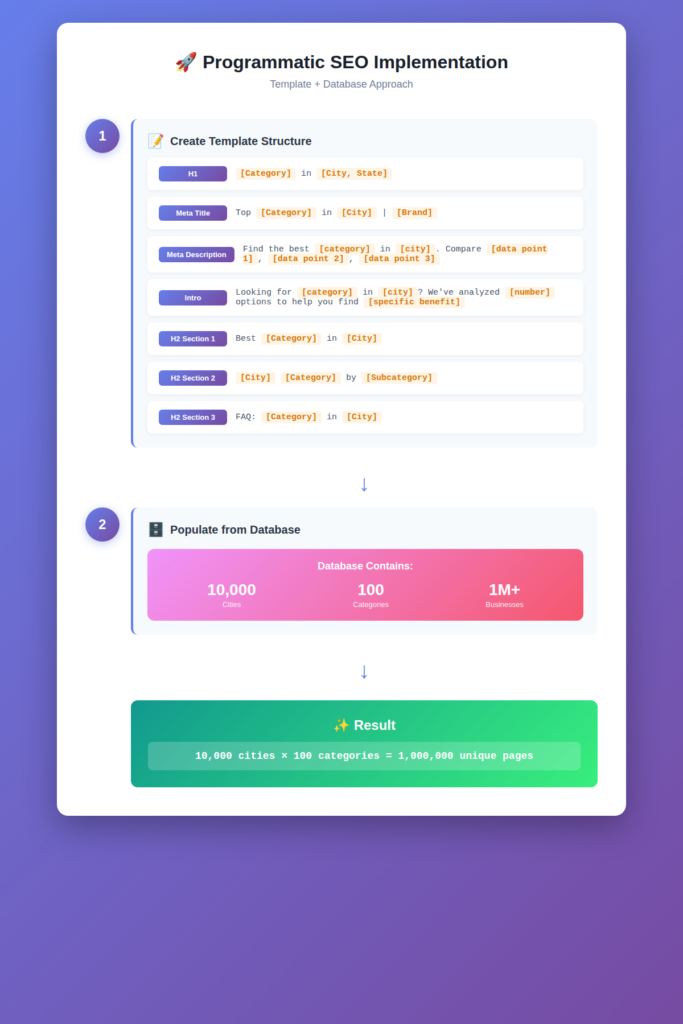 | Programmatic SEO | Automated page generation at scale | Creates thousands of pages efficiently |